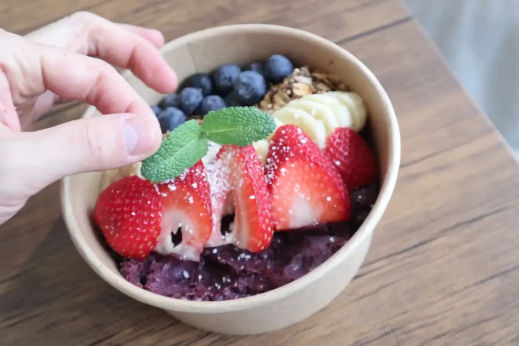 木製の机が暖かみを感じる落ち着いた雰囲気の店内は、お買い物帰りに一息つくのにもピッタリ。アサイーボウルや大豆ミートのタコライスなどヘルシーメニューが揃い、女子会にもおすすめです。