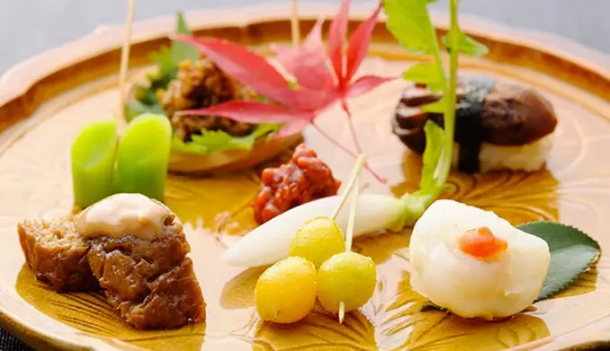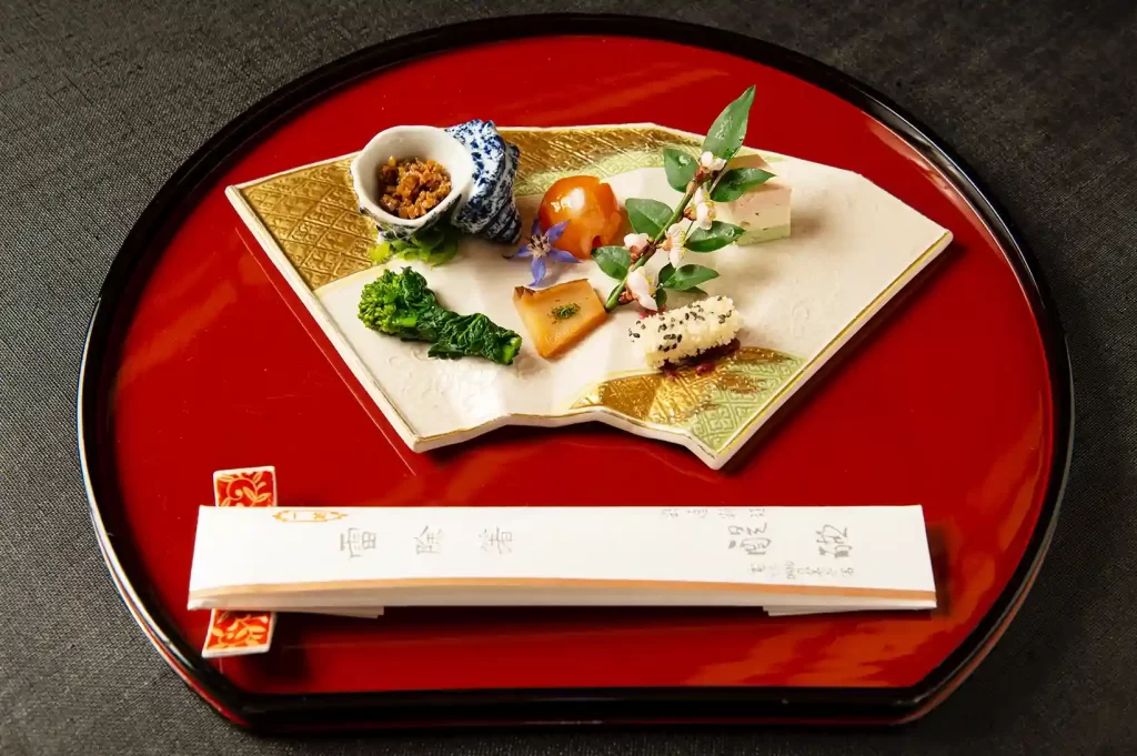 毎朝仕入れられる吟味された旬の食材を、創業以来の献立を守り、時代と共に進化した懐石形式の精進料理としてお出ししています。