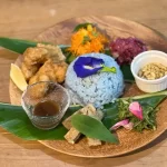 食べることのできるハーブやお花で彩られた、虹のお皿でいただく色鮮やかなお料理は、まさに食のアート。沖縄の色鮮やかなハーブを集めた色彩に、心も躍ります。